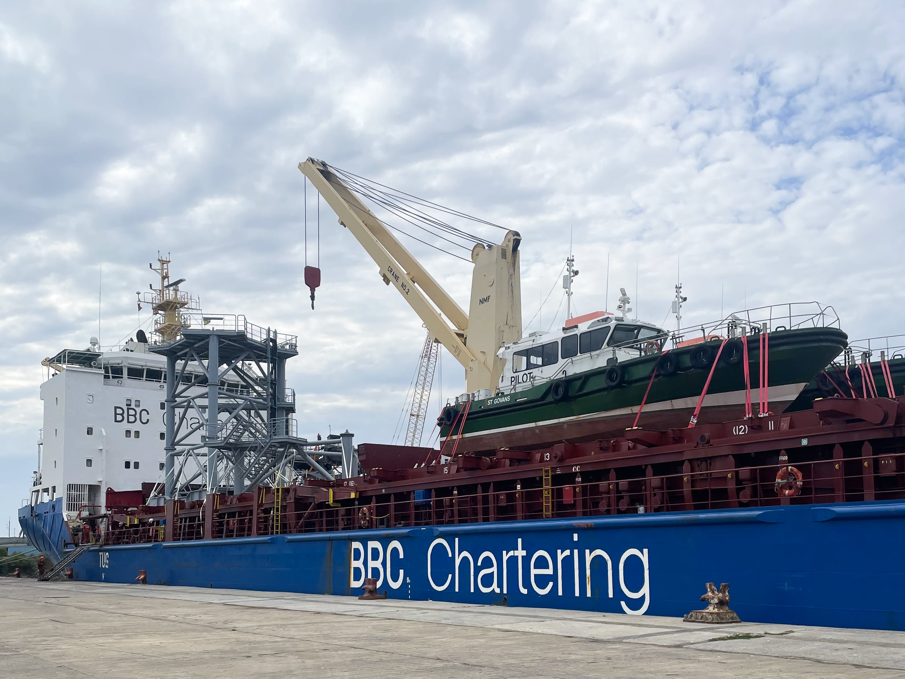 Chartering of an MPP vessel for transporting pilot boats from Pembroke, UK to Halifax, Canada, including arrangements for a riding crew, divers, customs clearance, and load-out supervision.